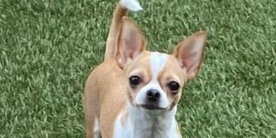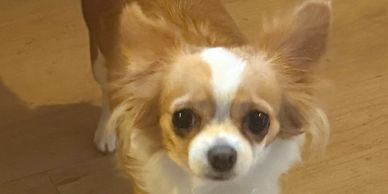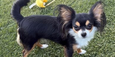Didi is a super fun, people friendly, tiny little girl. She is 4.5 lbs right now and has had one litter of two puppies. She loves pets, hugs, kisses, brushes, toys and cuddles on the couch. Didi is very playful and smart. She is both affection and food driven. She is well suited for a home with another dog though she is a straight up performer for people. Didis signature move is to dance on her back legs for you a very very very long time while flapping her ears like butterfly wings!